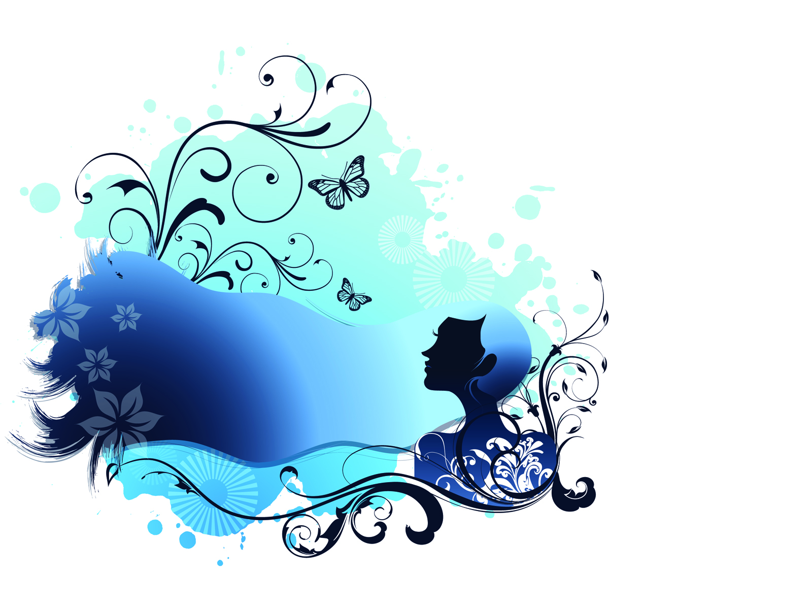 Medium size preview (1024x768px): Blue Girl with Floral Vector Illustration